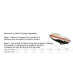 Étape 2 : Lisez la taille de cadre correcte dans le tableau ci-dessous. Par exemple, si la longueur de la semelle est de 26 cm,
